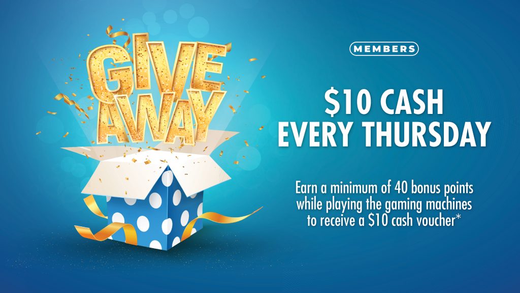 Earn a minimum of 40 bonus points while playing the gaming machines to receive a $10 cash voucher*