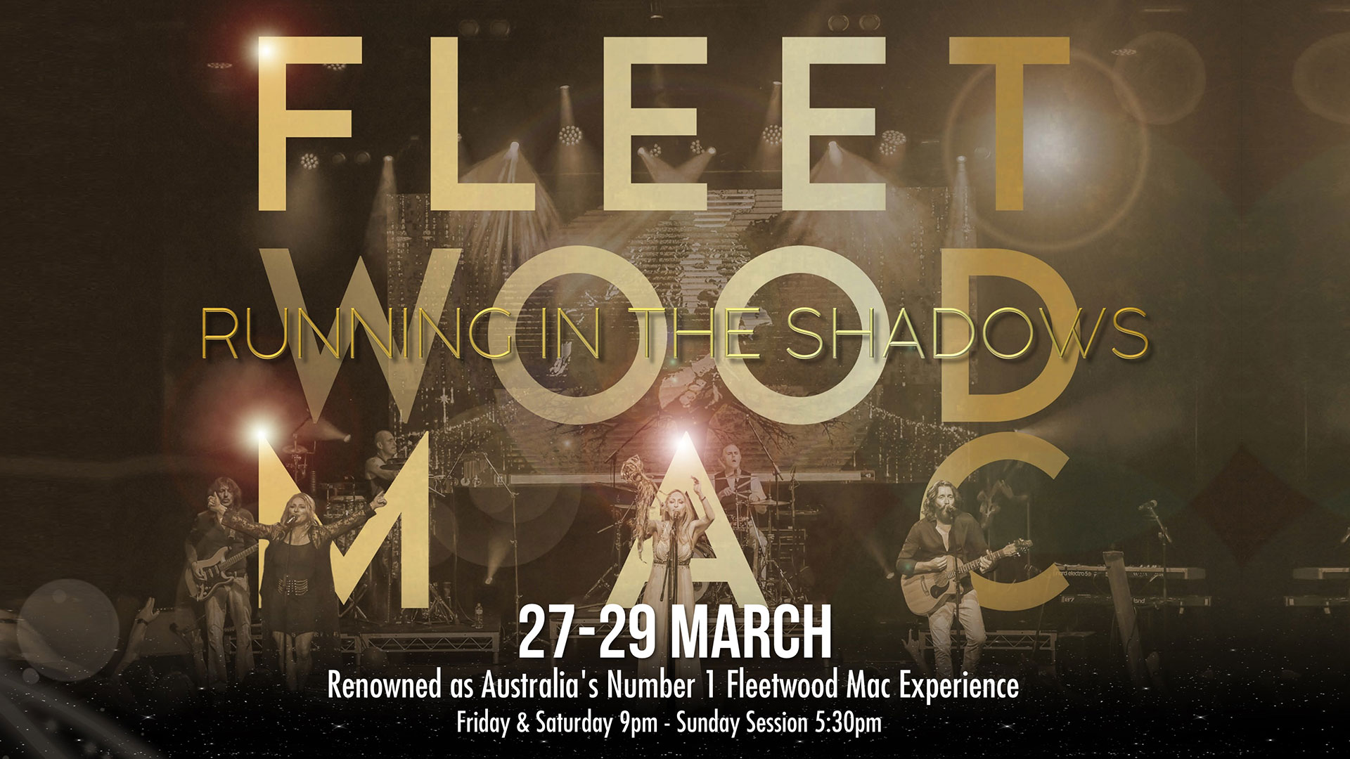 Running in the Shadows are Australia’s longest running tribute to the band with a history like no other – few bands have lived as boldly or evolved as dramatically. This show captures the spirit, the sound and the legend that is Fleetwood Mac.