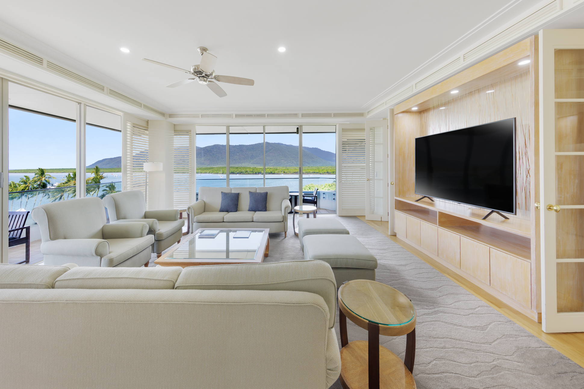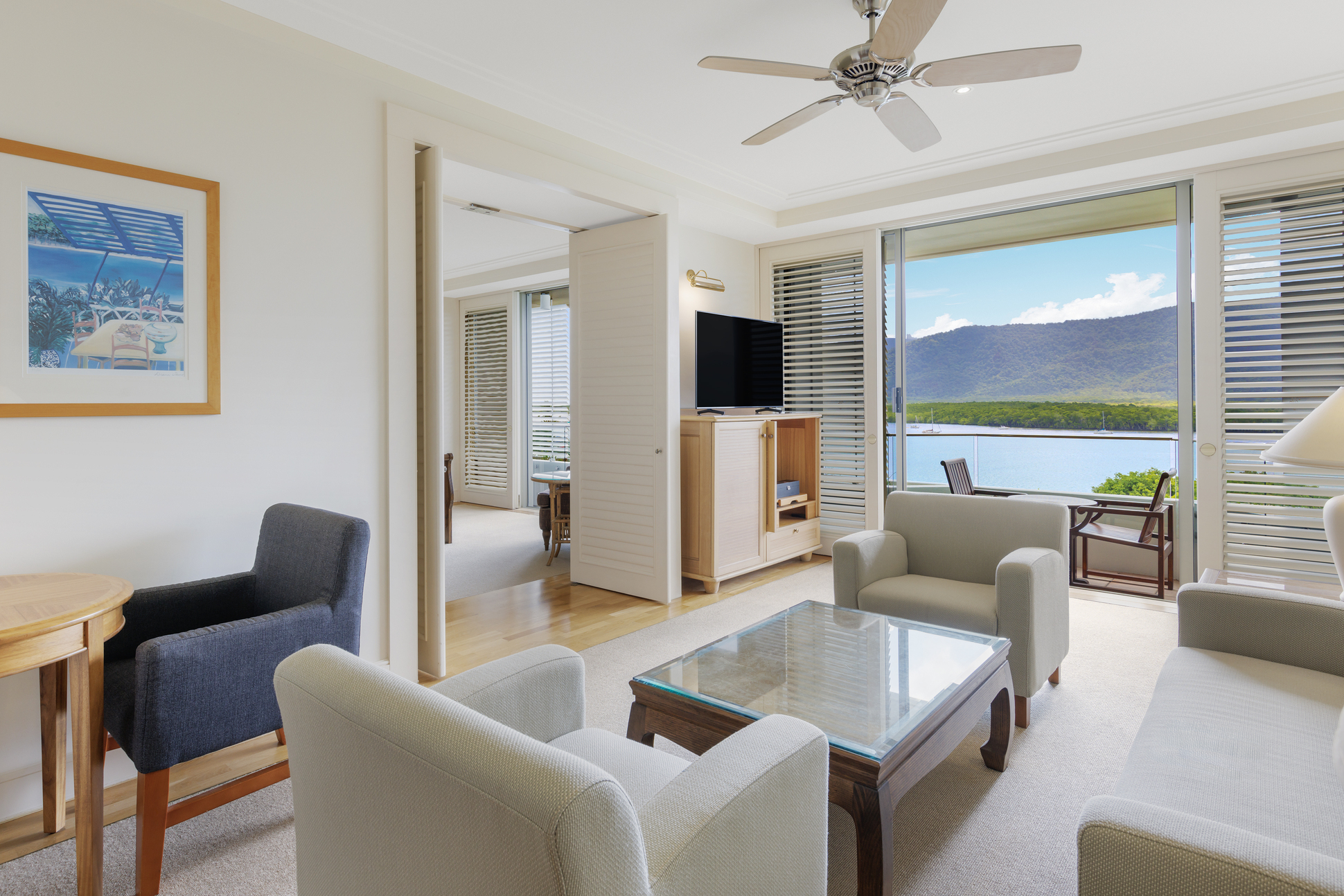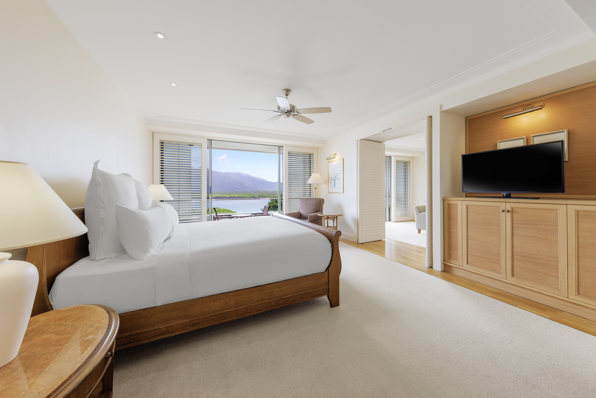 With an abundance of natural light, the luxurious Junior Suite features views of Trinity Inlet. The spacious suite features a king sized bed, double spa bath and separate walk-in shower.