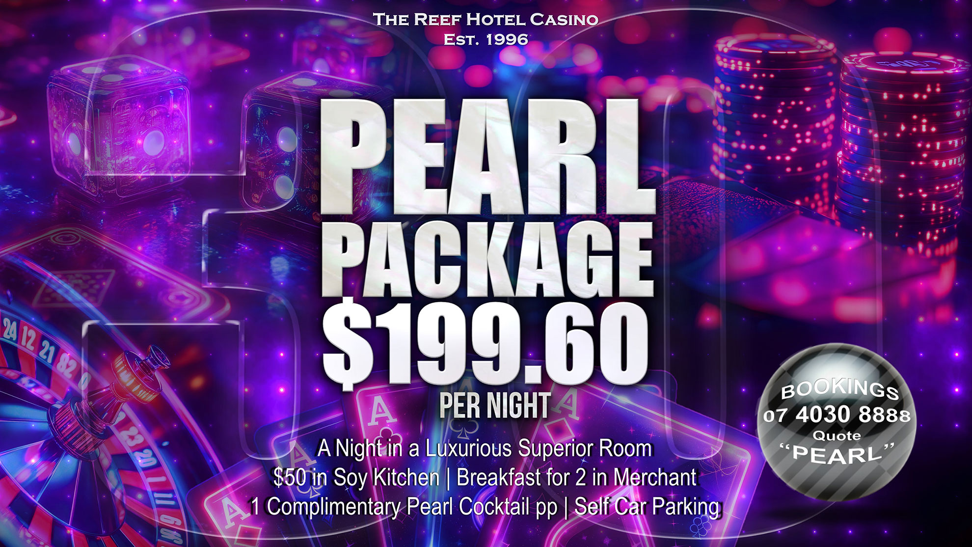 To book call 4030 8888 and quote “PEARL”