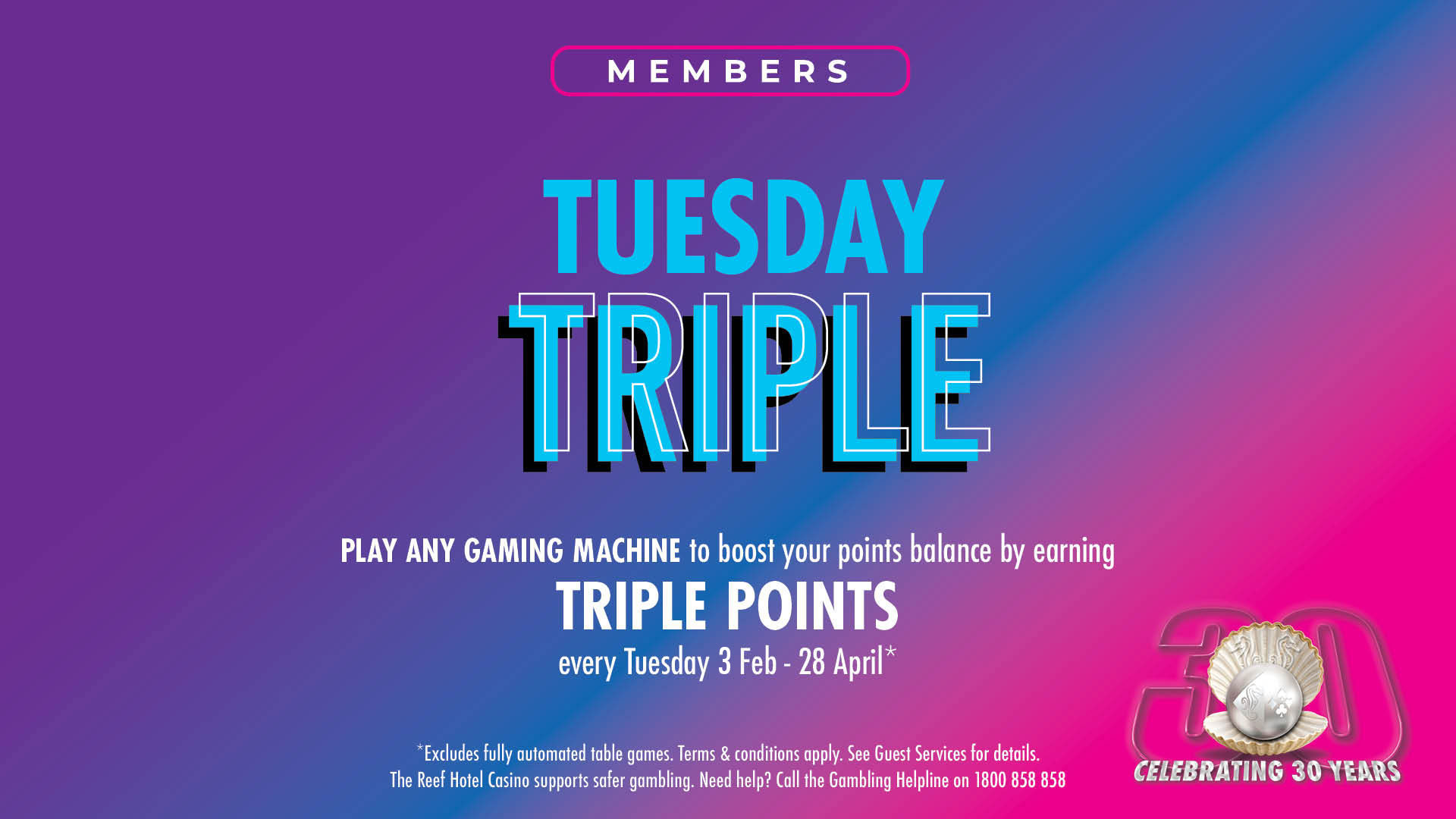 Earn triple bonus points every Tuesday 10am – 2am from Tuesday 3 February to Tuesday 28 April 2026.