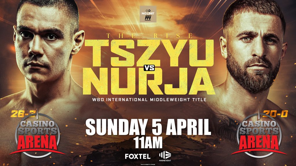 SPORTS ARENA WBC SUPER WELTERWEIGHT WORLD CHAMPIONSHIP FUNDORA V THURMAN Sunday 29 March | 10am WBO INTERNATIONAL MIDDLEWEIGHT TITLE TSZYU V NURJA Sunday 5 April | 11am